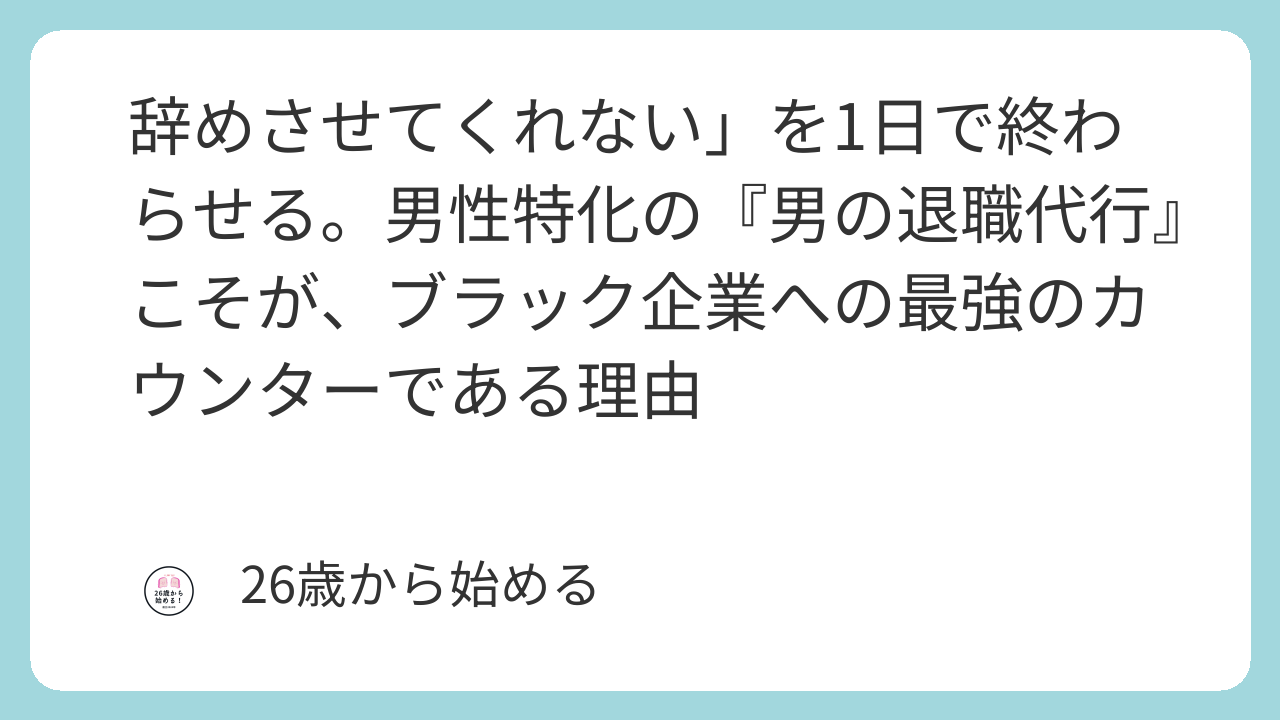 辞めさせてくれない」を1日で終わらせる。男性特化の『男の退職代行』こそが、ブラック企業への最強のカウンターである理由
