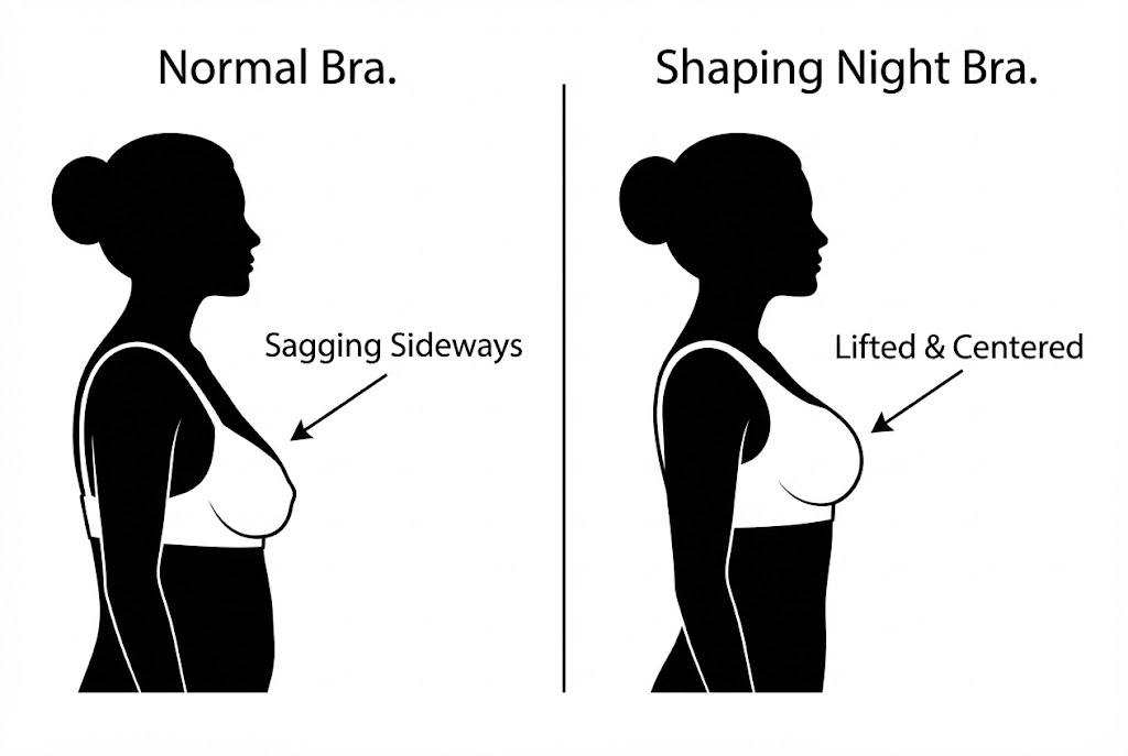 この「お肉の流出」を防ぎ、正しい位置に固定し続けることができるのは、専用設計されたナイトブラだけなのです。