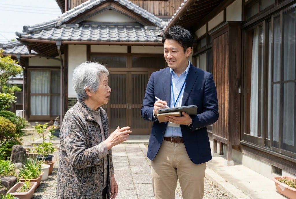 これがトナリスクの最大の強みであり、AIやデータでは絶対に分からない部分です。 プロの調査員が、購入予定物件の隣、向かい、裏、そして町内会長などに直接ヒアリングを行います。 もちろん、「購入検討者が依頼している」とバレて角が立たないよう、自然な会話の流れを作るプロの技術を使います。